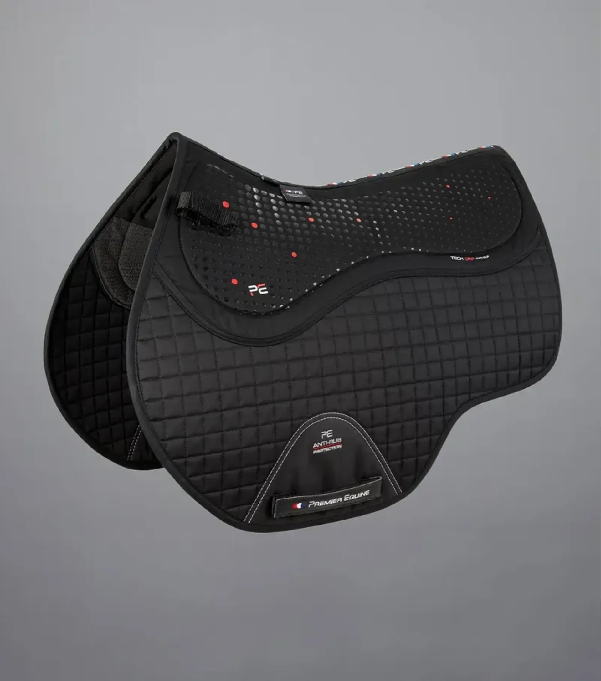 An innovative Premier Equine Close Contact Tech Grip Pro Anti-Slip GP/Jump Square crafted from a combination of technical gels, anti-slip and high quality cotton fabrics.
