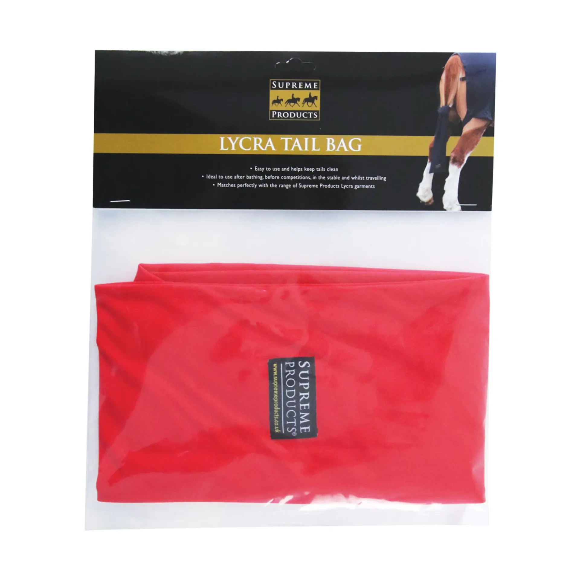 The Supreme Products Lycra Tail Bag is easy to use and helps keep tails clean.