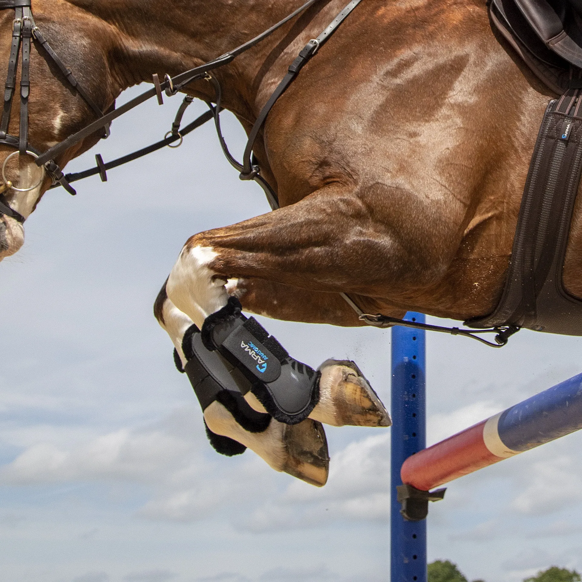 These open fronted Shires ARMA Tendon Boots offer protection to vulnerable areas whilst allowing the horse to feel his way.