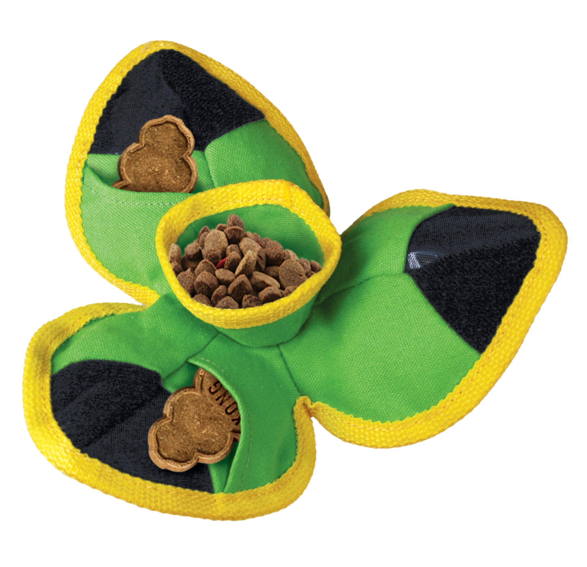 Ballistic Hide ’N Treat is designed with heavy-duty pockets and non-abrasive Velcro® enclosures to hide treats and occupy dogs through varying levels of difficulty while providing a comfortable chewing experience. Open the pockets for an easy challenge and close to increase the difficulty. Want to add to the play session? Close completely to turn the toy into a ball-shaped fetch toy. A reinforced wipeable canvas make this toy easy to clean while standing-up to tough play sessions for long-lasting fun.