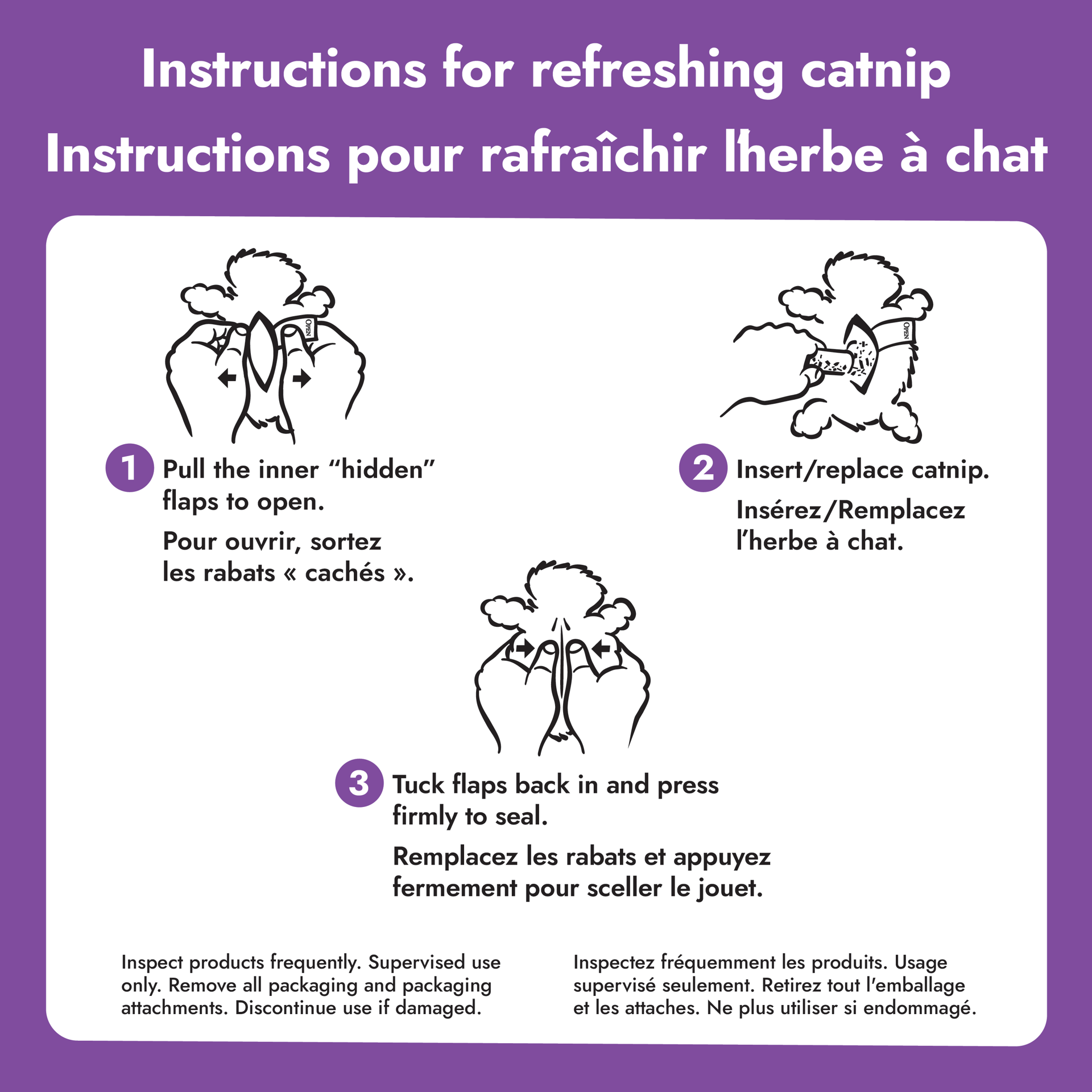 KONG® refillable catnip toys utilize top quality, natural North American catnip. These toys have a special compartment that can be opened and closed, so that fresh catnip can be added again and again. Catnip is a natural, non-addicting herb that encourages play in about 70% of cats. Gently twist the filled toy to release catnips' herbal oils. To maintain maximum freshness, freeze extra catnip until needed.