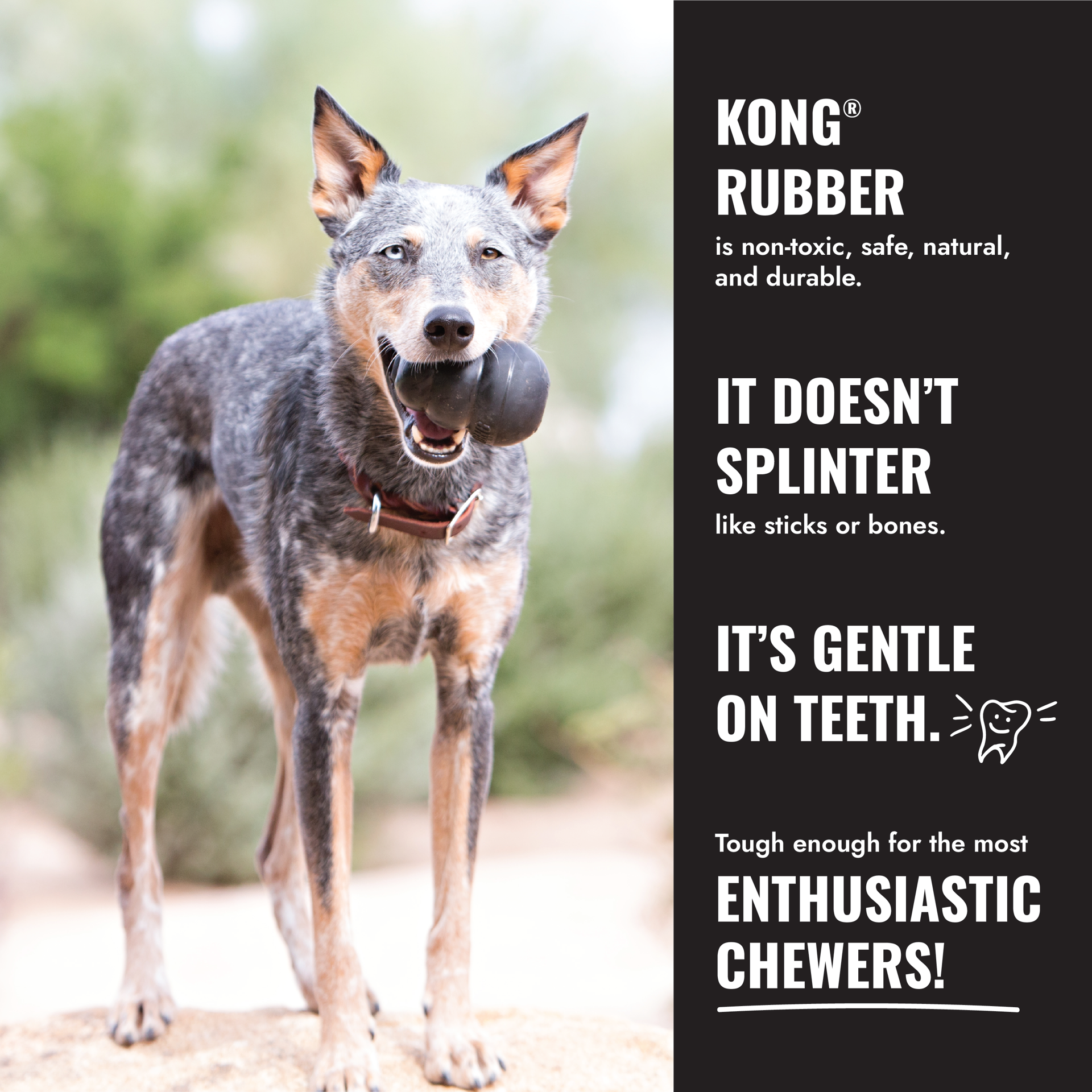 A unique bone shape and durable KONG Extreme Rubber satisfies and rewards natural chewing instincts while providing a long-lasting solution that keeps dogs engaged.