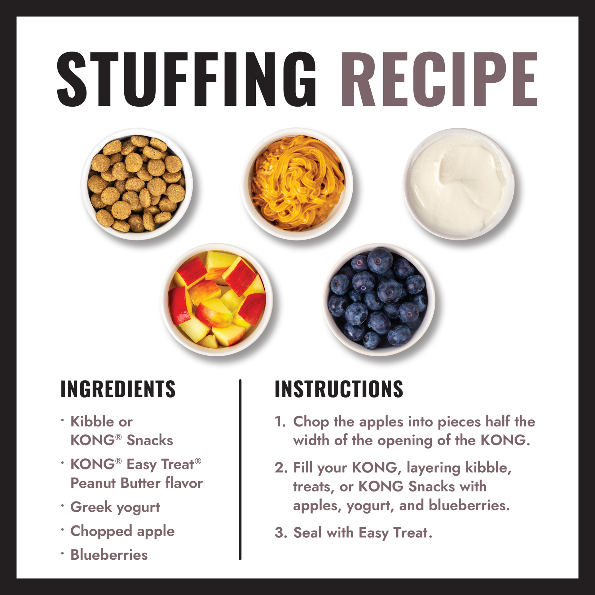 Stuff KONG Extreme Goodie Ribbon’s four spaces with treats and the Goodie Gripper™ ridges inside will make getting the nibbles out a mentally challenging puzzle for dogs. Ideal for stuffing with KONG Easy Treat, KONG Snacks or a dog’s favorite kibble.