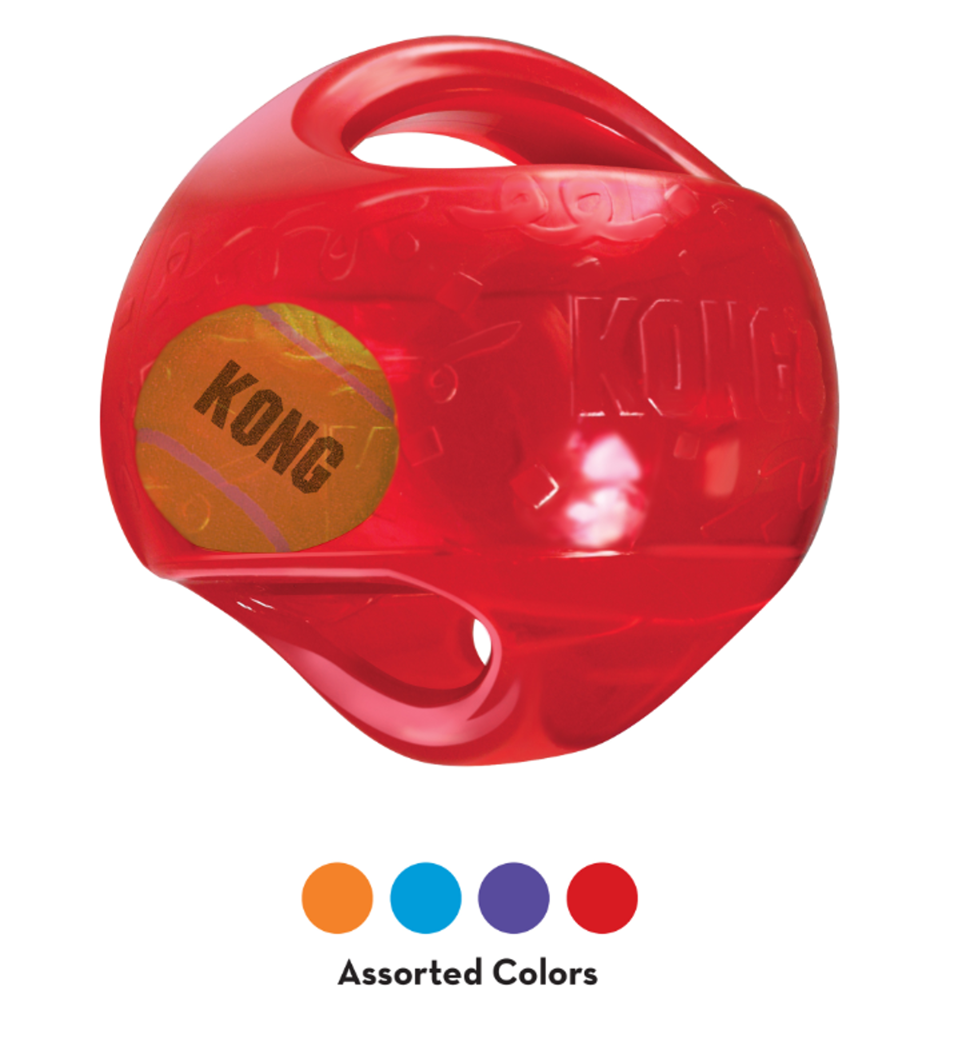 The interior tennis ball and loud squeak entice play, while the handles make pickup and shaking easy. The Jumbler stands up to tough play, making it ideal for games of fetch. Available in two shapes and sizes, the KONG Jumbler will ensure an exciting, active play session for you and your dog.