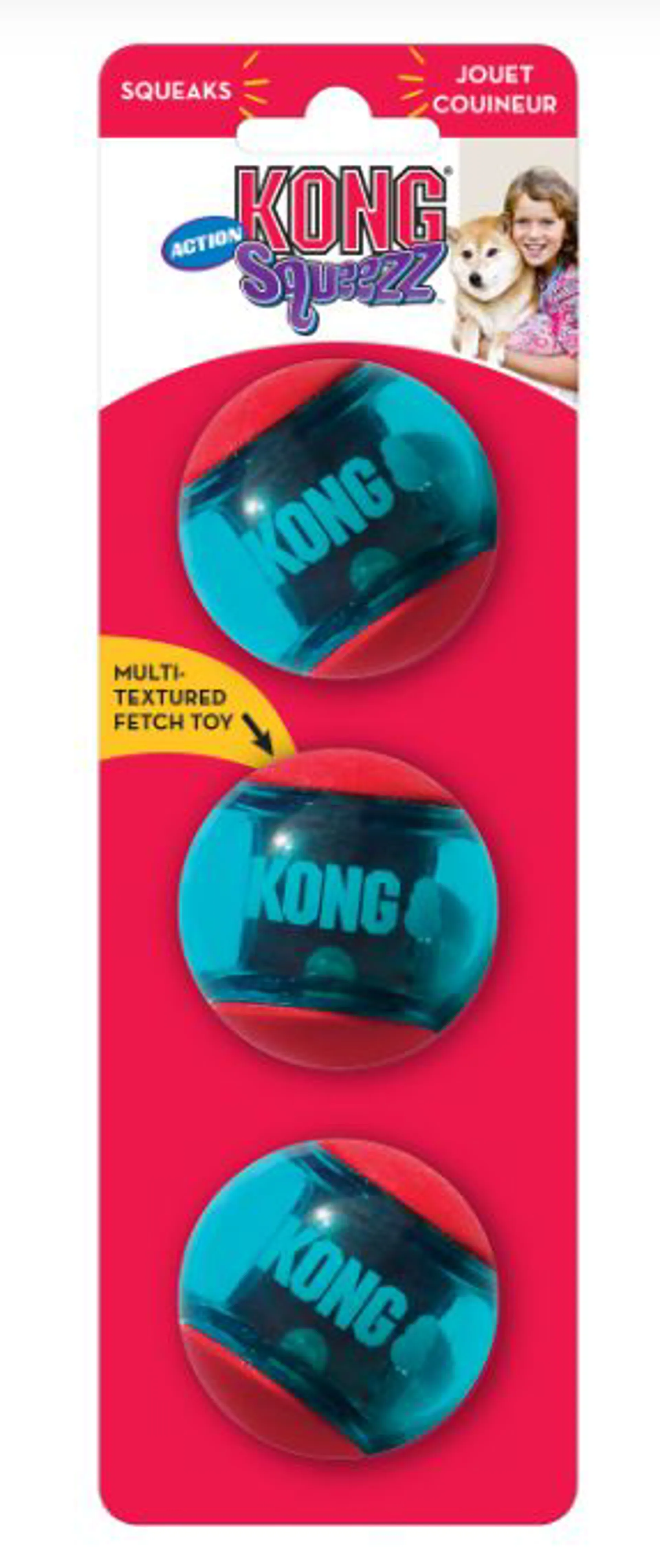 Dogs love chasing after the wild bounce that comes from the new KONG Squeezz Action Shapes featuring dynamic rubber and fun shapes that make games of fetch way more fun.
