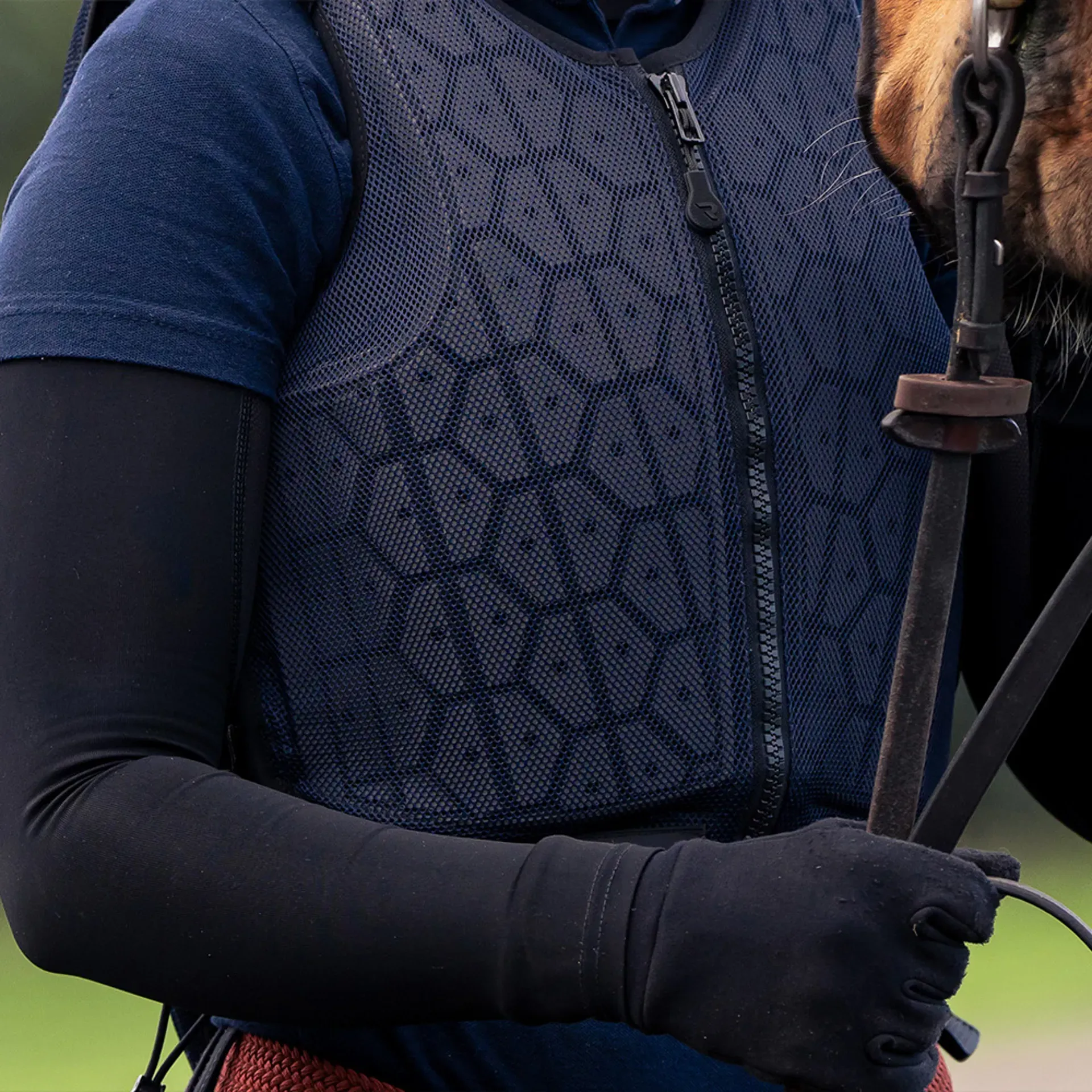 Adjustable shoulder straps and elastic side laces allow the fit to be tailored for both security and comfort, ensuring the protector stays close to the body without restricting movement. A central front zip makes it easy to put on and remove, while subtle Racesafe branding maintains a clean and professional appearance.