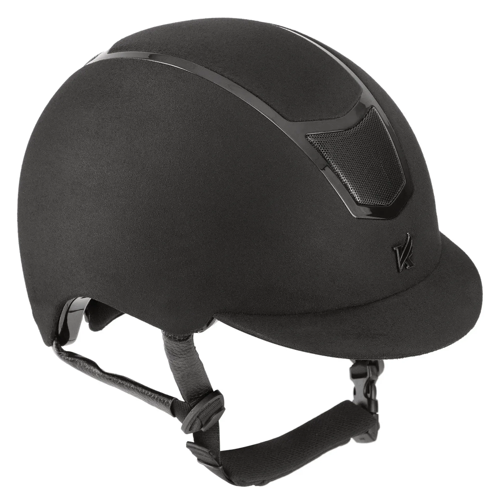 Modern engineering meets classic elegance in this sleek Karben Carmella ventilated riding hat which sports a synthetic suede finish.