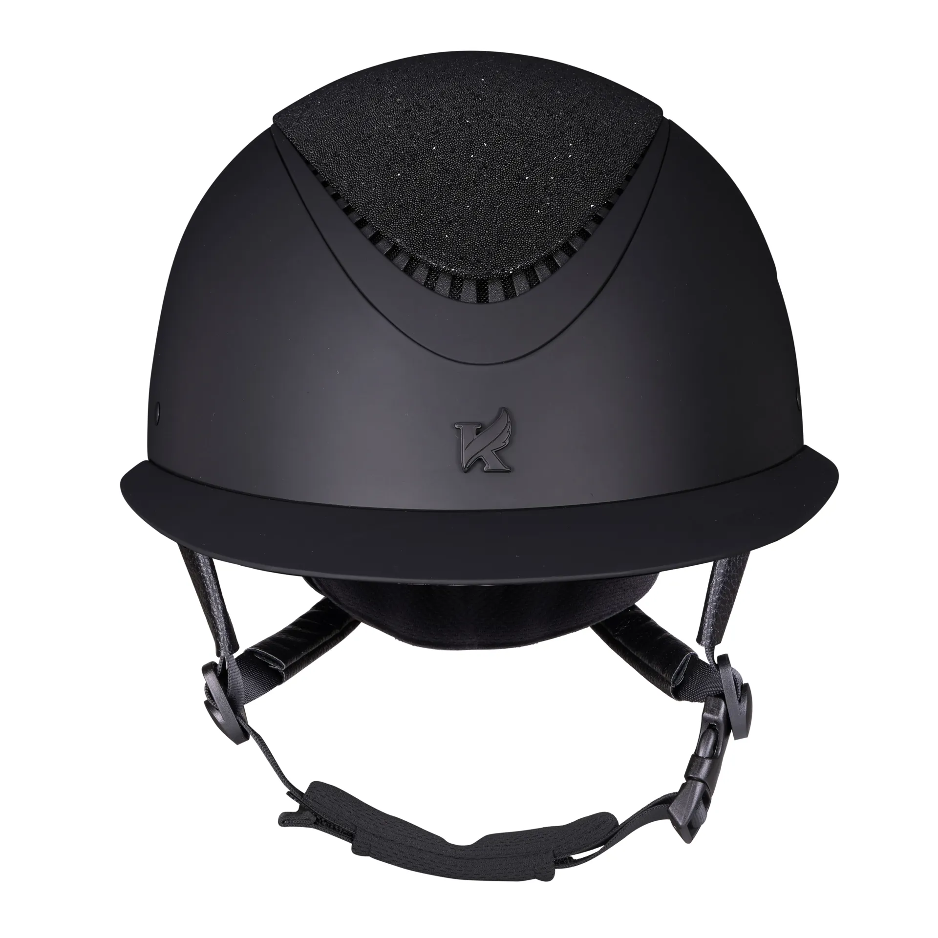 The Shires Karben Lia Ellipse Riding Hat features a crystal fabric crown that sparkles from all directions in the limelight of the show ring.