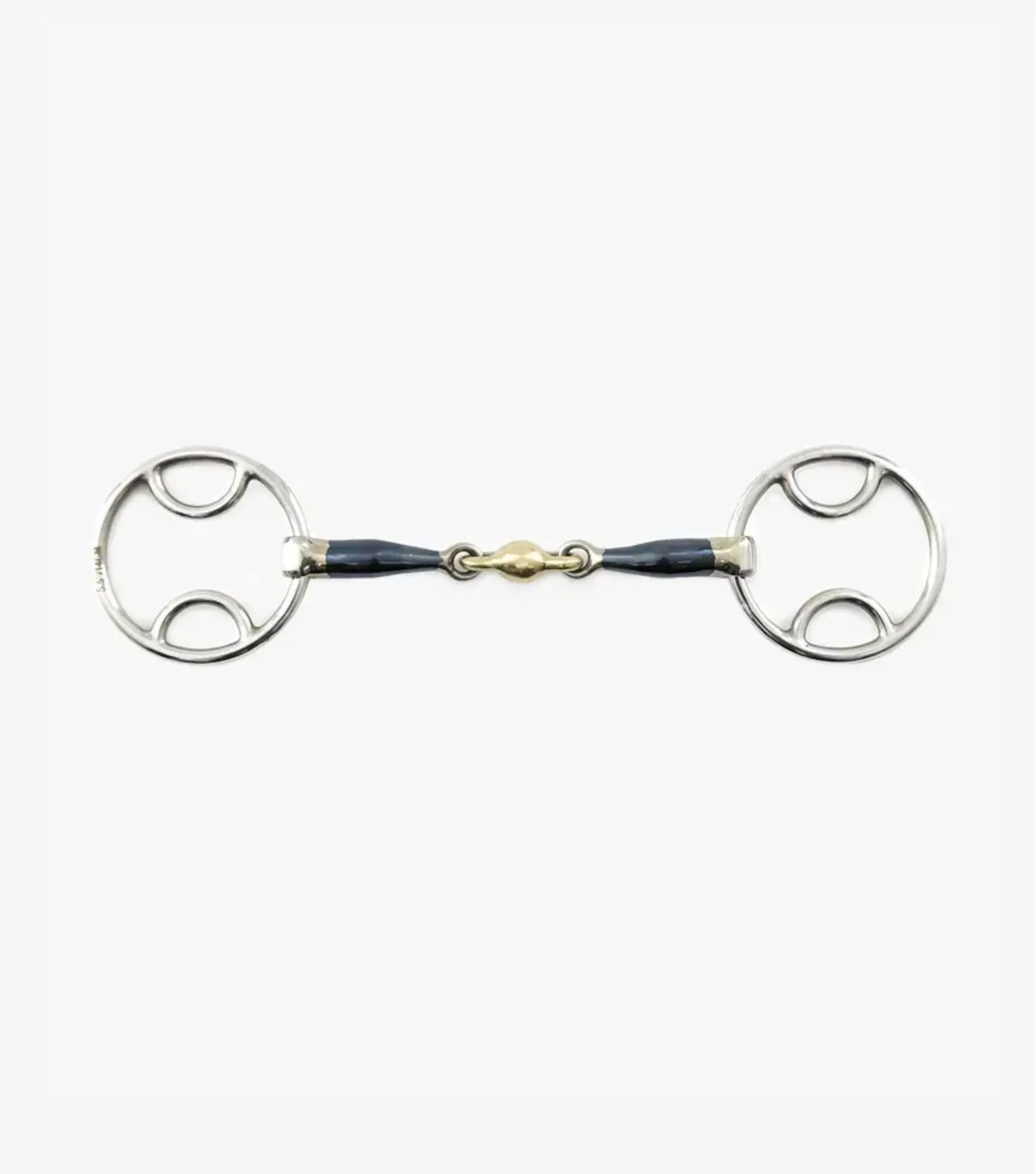 The double jointed blue sweet iron mouthpiece with brass lozenge offers a higher level of comfort in the horse's mouth as it helps to prevent the pinching of the lips and bars of the mouth whilst reducing the nutcracker action of a single jointed bit. Blue sweet iron oxidises easily which creates a warming sensation and a sweet taste in the horse's mouth, helping them to accept the bit. Please note that the blue colour will fade with use, this is normal.