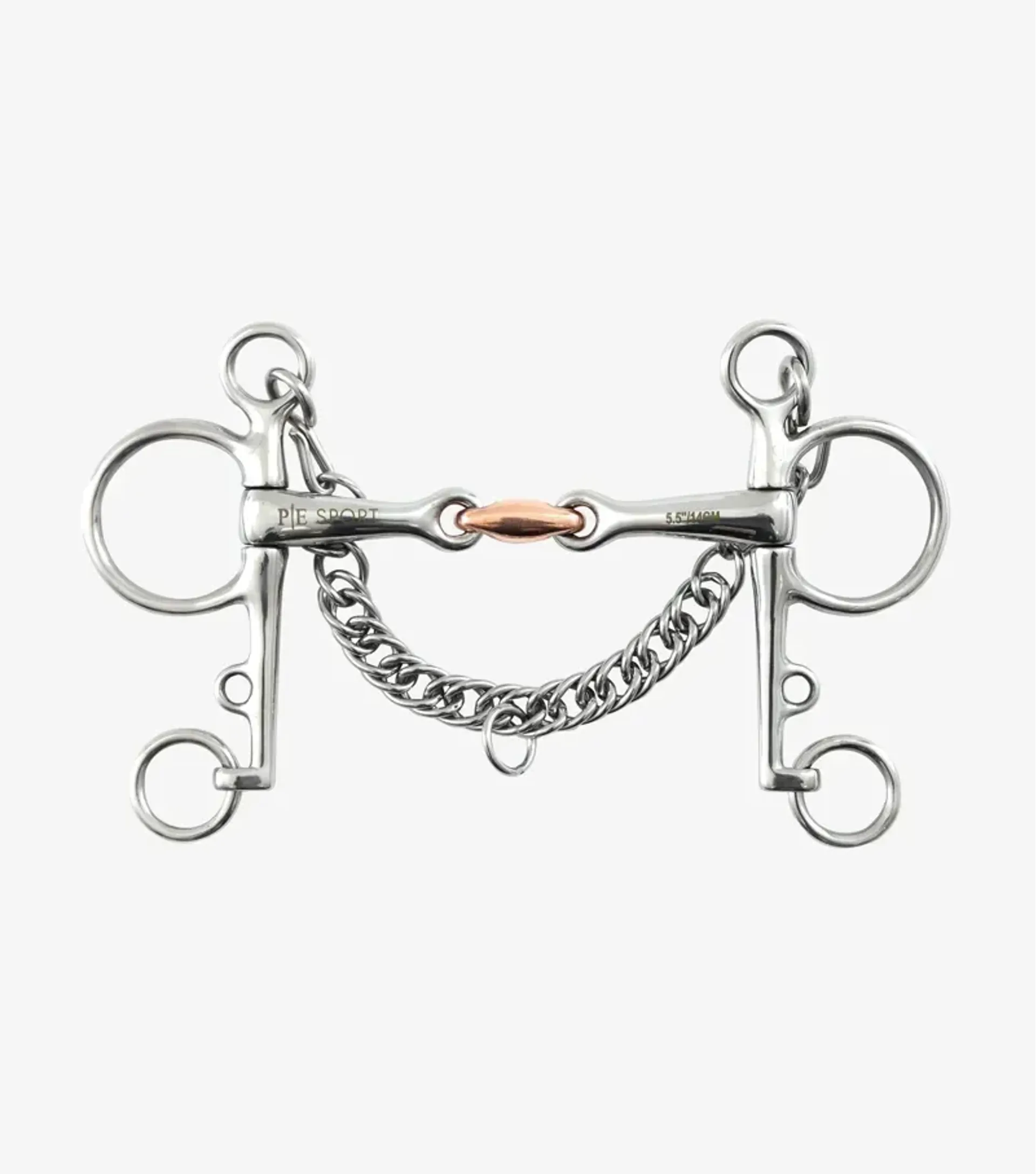Premier Equine Double Jointed Pelham With Copper Lozenge have been designed to be used with two reins, one attached to the top ring (snaffle) and one attached to the bottom loose ring (curb), which is used when needed for extra leverage.