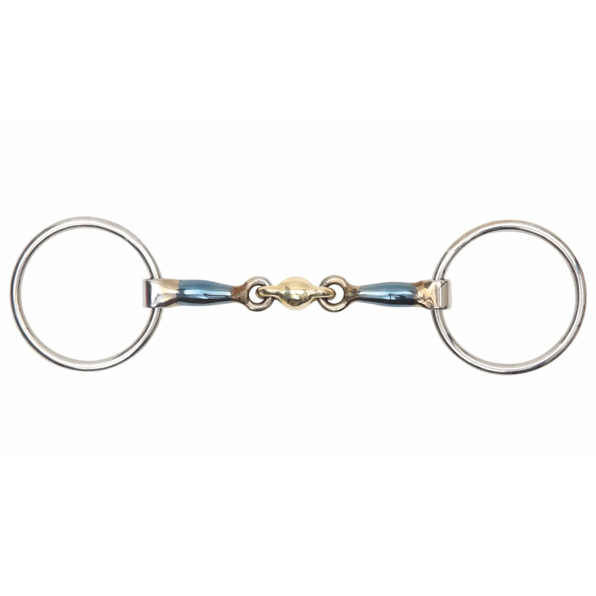 The Shires Blue Sweet Iron Loose Ring with Lozenge can discourage fixing and leaning as it has much more movement than a fixed cheek to follow the angle of the tongue.