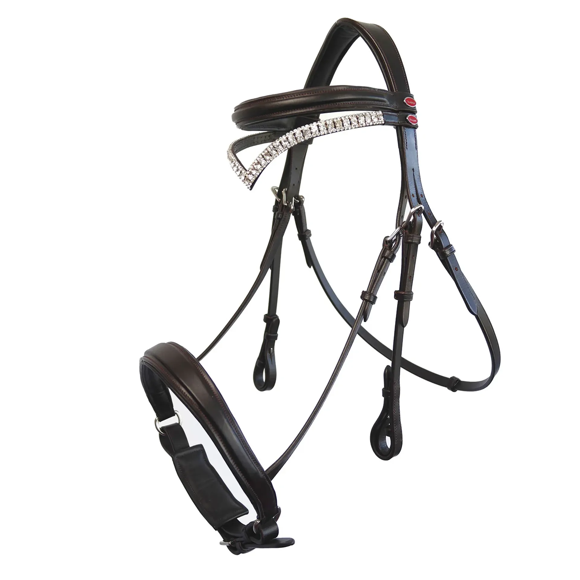 The John Whitaker Lynton Snaffle Bridle with Spare Browband comes with an everyday raised browband and a bejewelled diamante browband, which is perfect for shows.