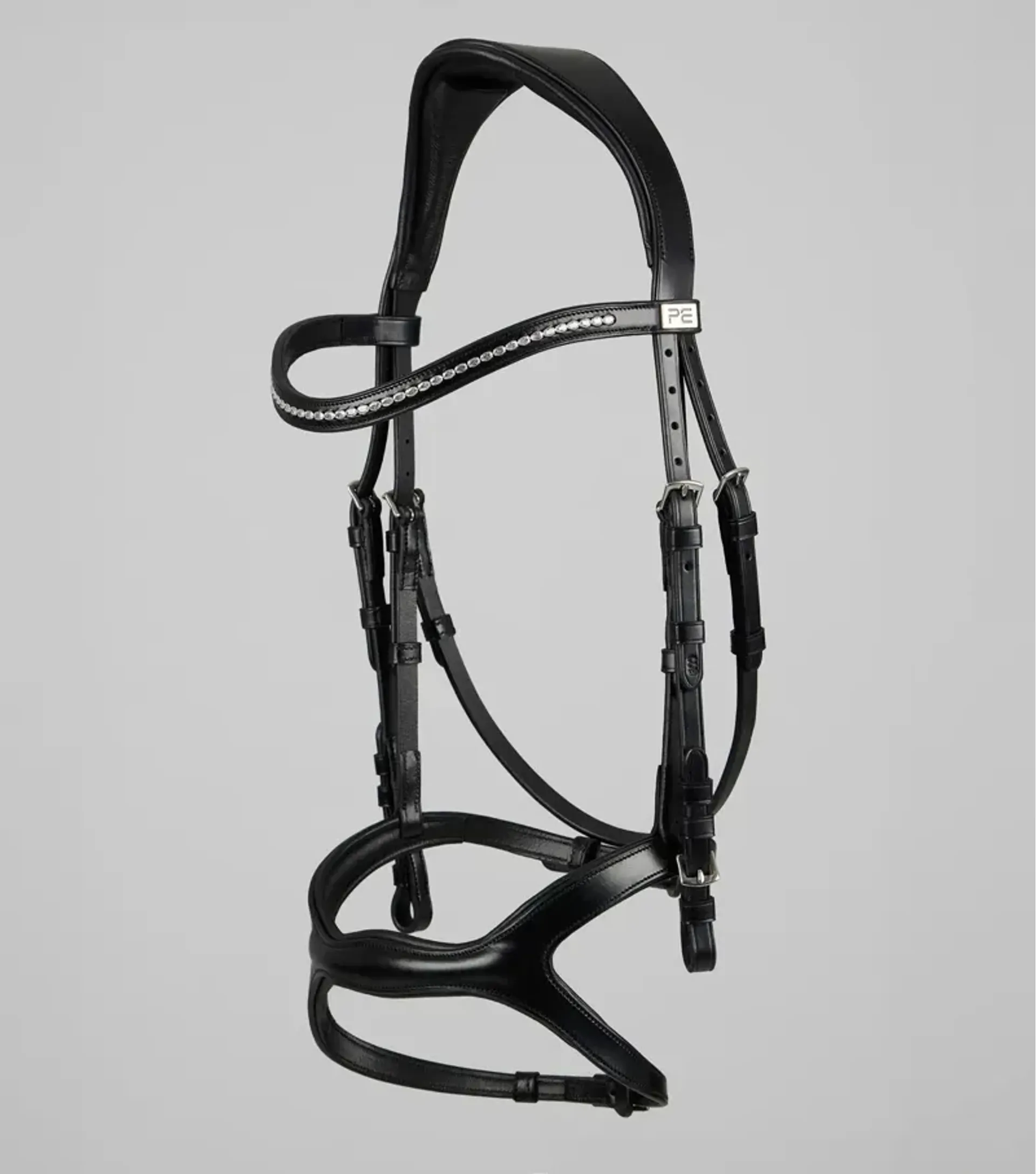 A stunning diamanté browband adds a touch of sophistication, beautifully complementing the bridle’s elegant design. High-quality stainless-steel fixtures ensure long-lasting durability and resistance to rust, while the chrome PE badge provides a polished finishing touch. Blending luxury, functionality, and thoughtful craftsmanship, the San Paolo bridle delivers a stylish and dependable choice for everyday riding or competition.