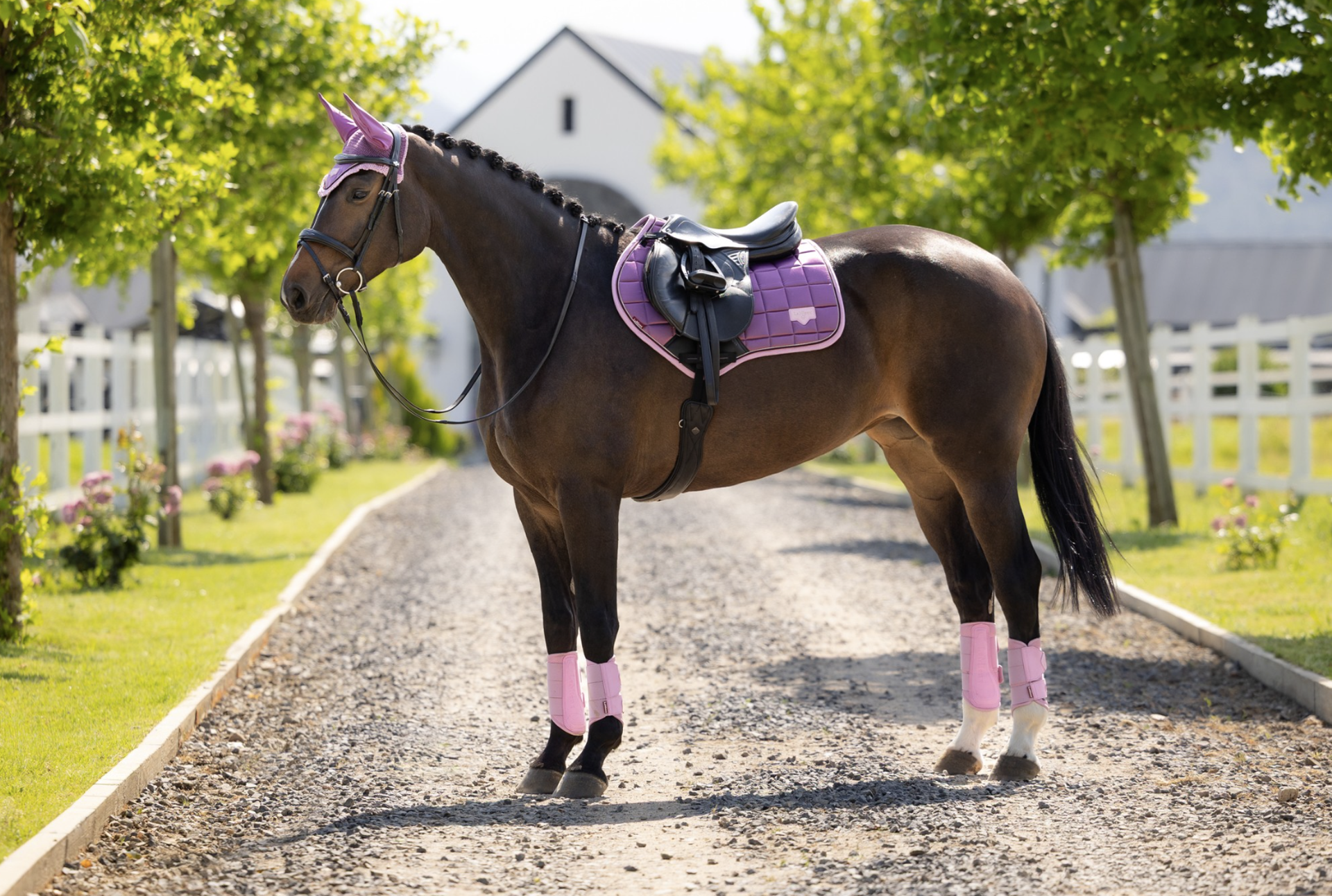 Woven Loire satin upper benefits from a wonderfully soft and breathable natural bamboo blend lining. The bamboo material controls heat and wicks efficiently to keep your horse cool under the saddle. The high wither shape reduces pressure and enhances the fit of your saddle. Elasticated saddle straps are slimmer at the point of connecting to the D-ring, leaving room for extra accessories.