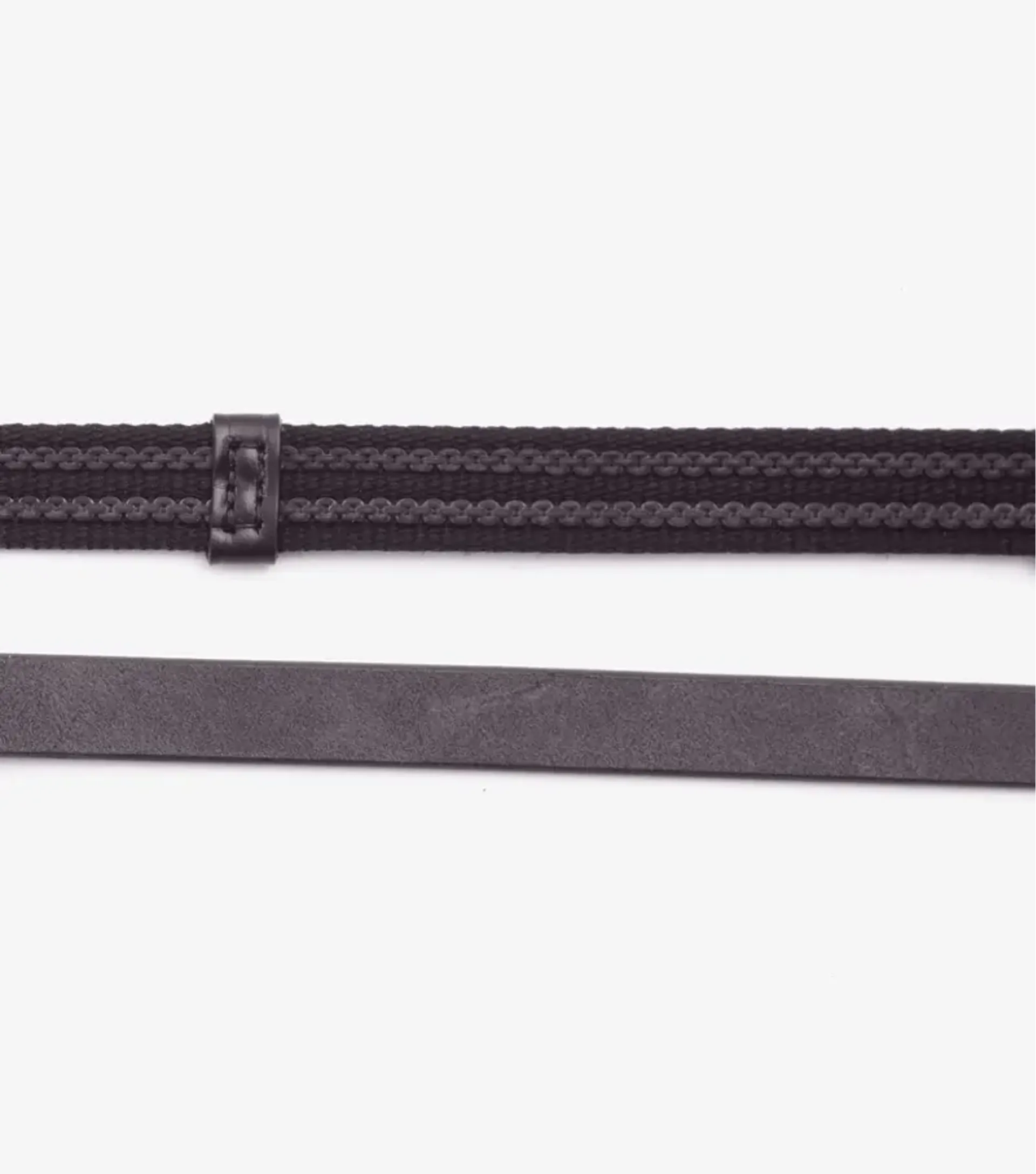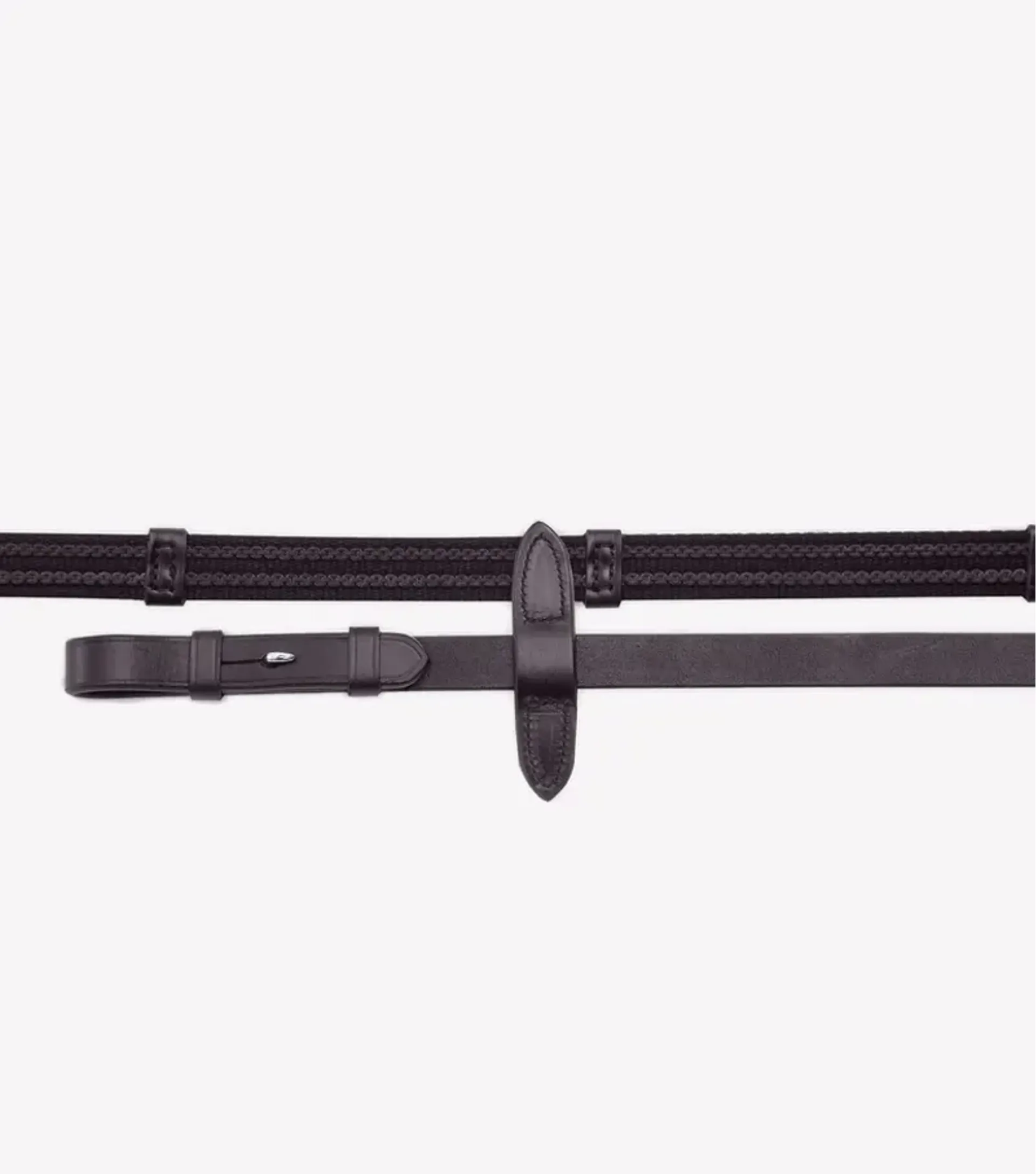 To aid grip even further, leather grips have been placed at regular intervals along the length of the webbing. Finished with leather martingale stoppers and stainless steel billet fastenings, these reins are ideal for those who need a strong grip without compromising on flexibility.