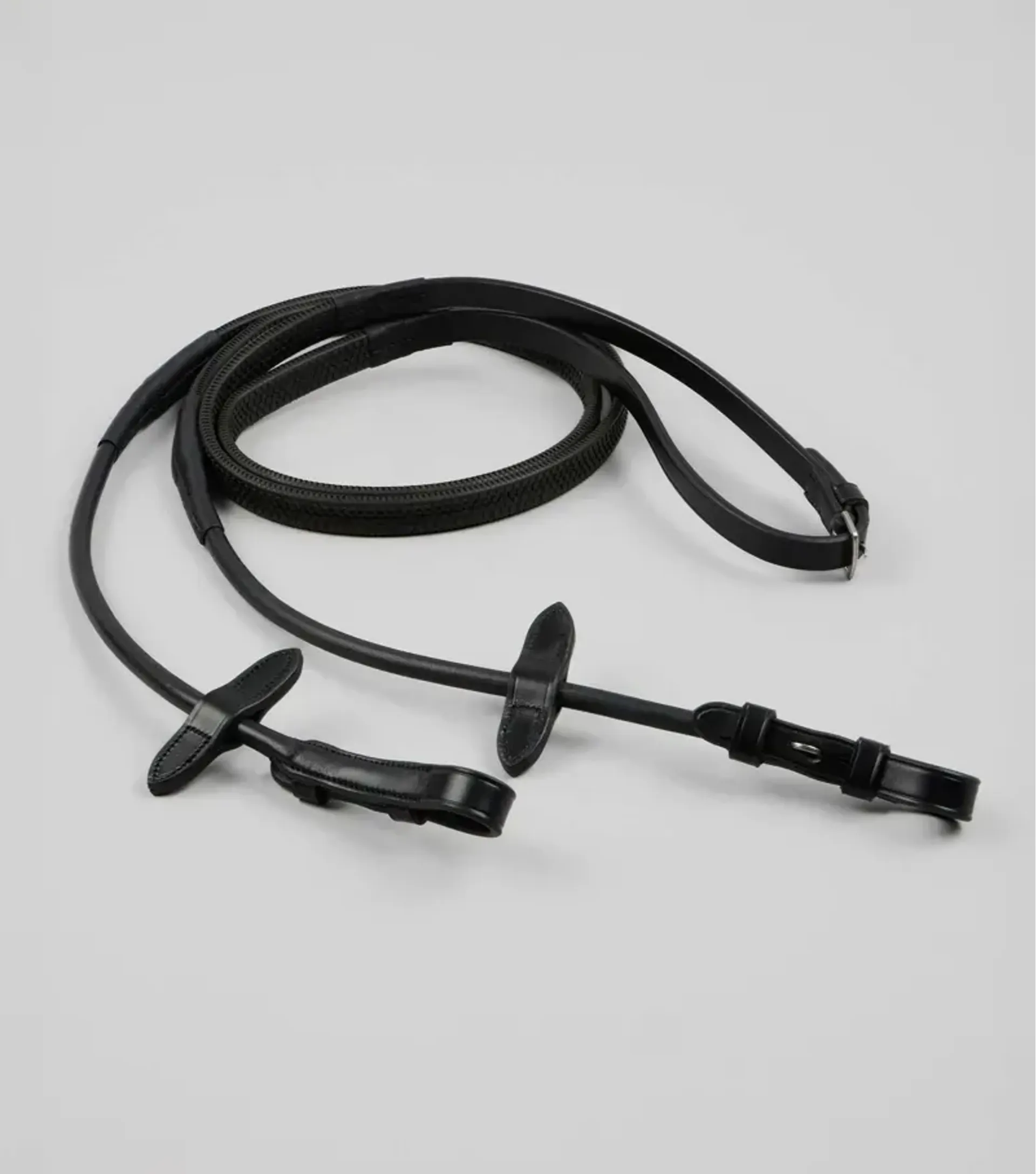 These black reins are designed with a rubber grip that provides excellent handling and a secure hold for the rider, adding an extra layer of comfort and control. Equipped with durable, stainless steel billet fastenings, these reins ensure a secure and reliable attachment to the bit. These high-quality finishings not only provide a sturdy and secure connection but also add to the refined design of the reins.