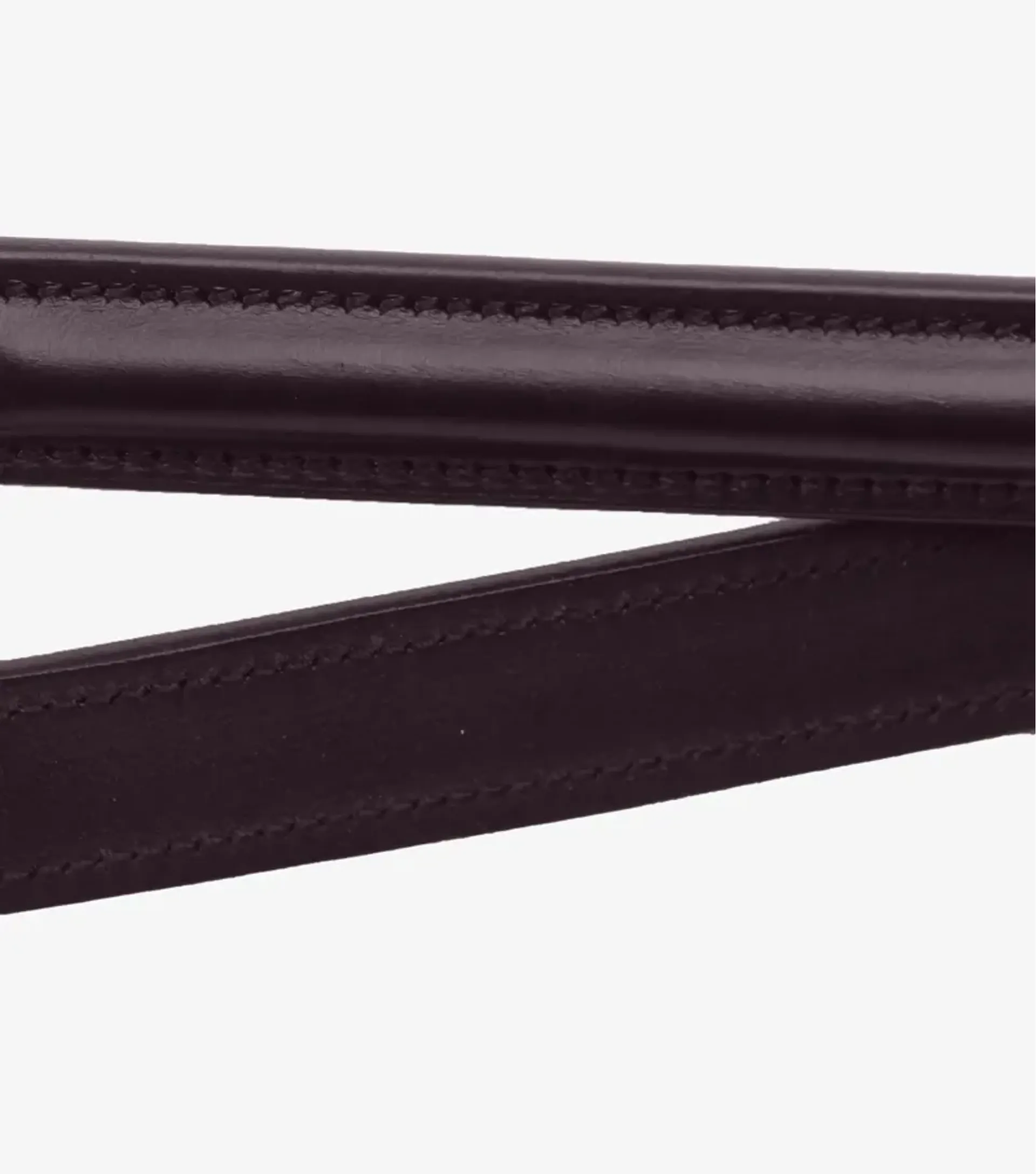 Each Premier Equine 5/8 Luigi Plain Leather Reins has a round raised design on the exterior surface, covering the first third of the rein from the bit.