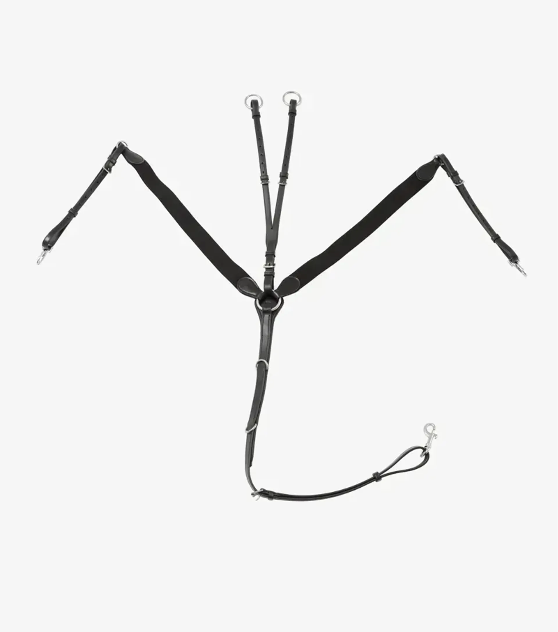 • Two additional D-rings on chest strap for lowering the martingale piece or attaching training aids