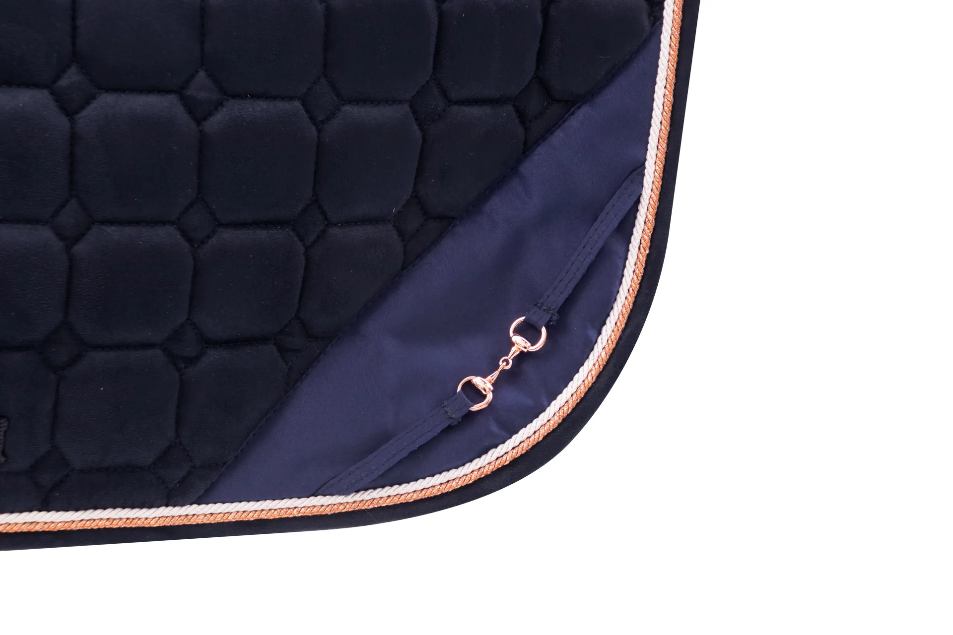 Question(s) answered about Hy Equestrian On The Bit Saddle Pad - Navy/Rose Gold