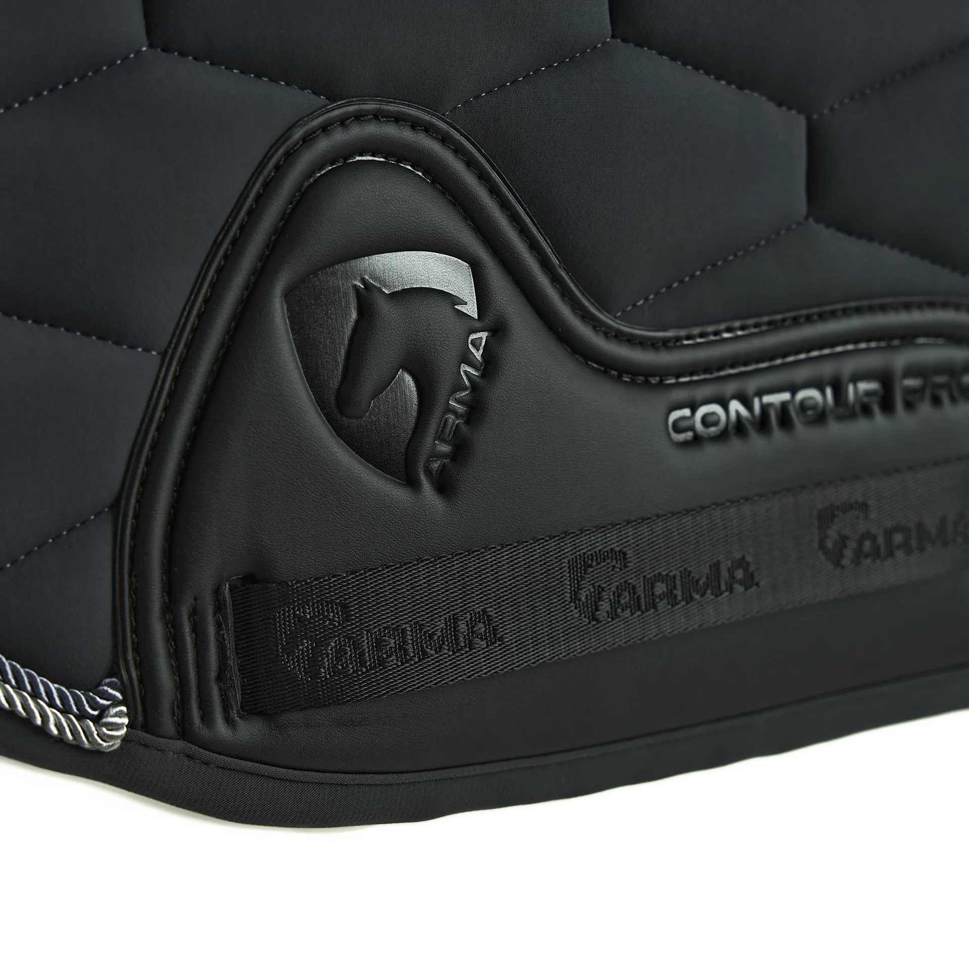 The PU ARMA contour pro girth guard protects heavy wear areas. Jacquard logo tape looks smart at the spine.