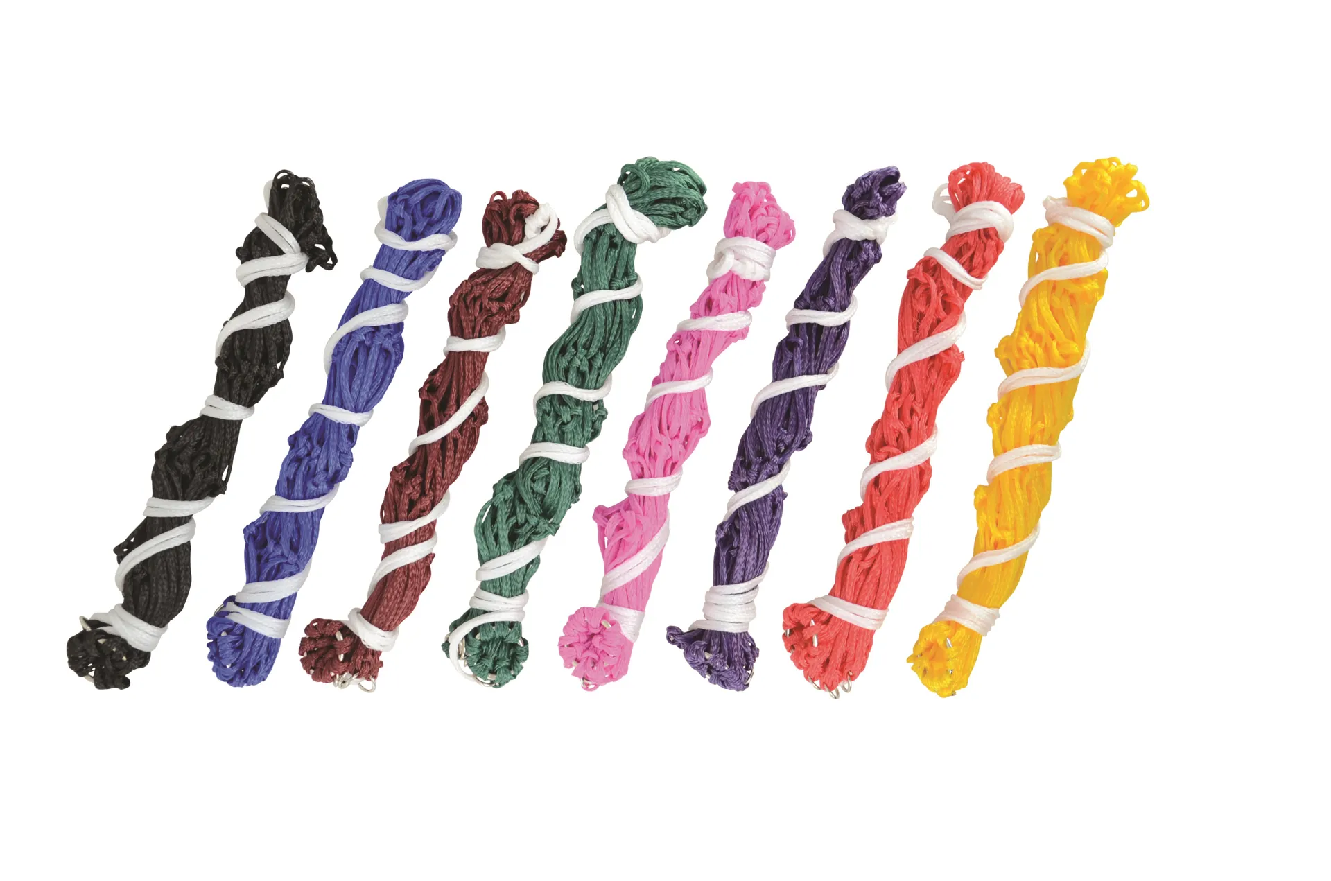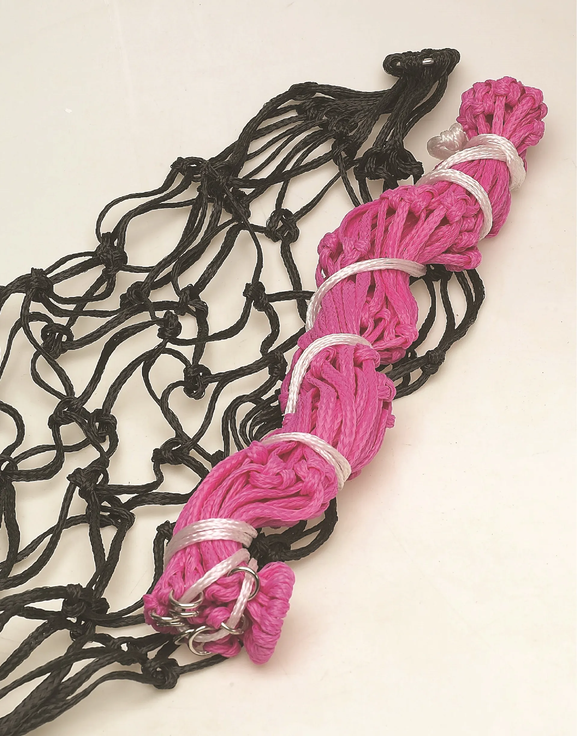 The Lincoln Polypropylene Mesh Hay Net with rings at the top and bottom.